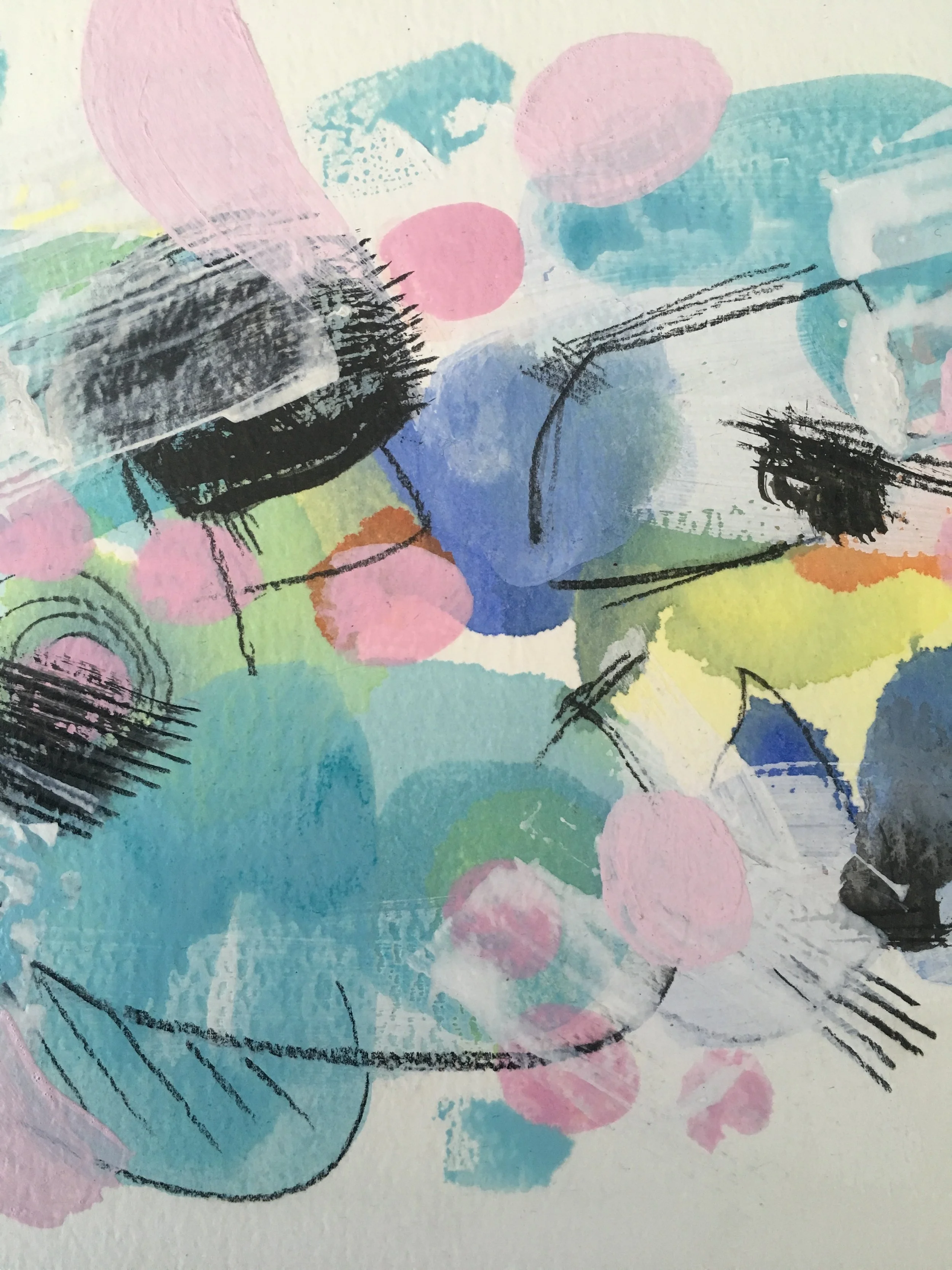 Mixed-media artwork on paper. The grid preview is square, but when you tap/click on an image the proportional, larger image will show.